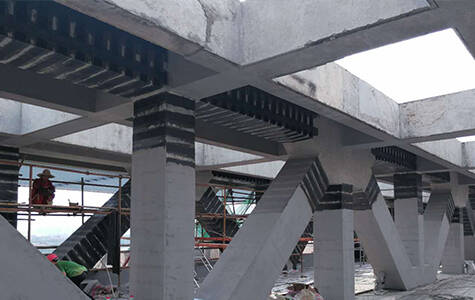 1.Preparatory work 2.Treat ment of surface 3.Primer and leveling construction 4.Externally bonded carbon fiber reinfroced polymer(CFRP)​ 5.Curing and protectiion 6.Recover work